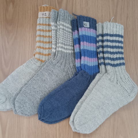 Hyvin kudottuja naisten ja tyttöjen villasukkia.