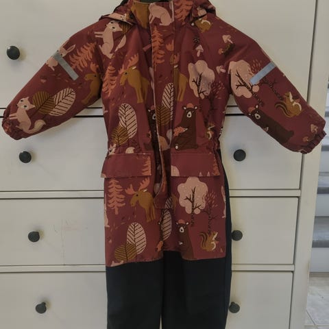 Yhdellä lapsella käytössä muiden talvivaatteiden ohella. Peppu ja polvet siistit, jalkarenksut ehjät.