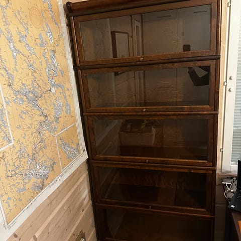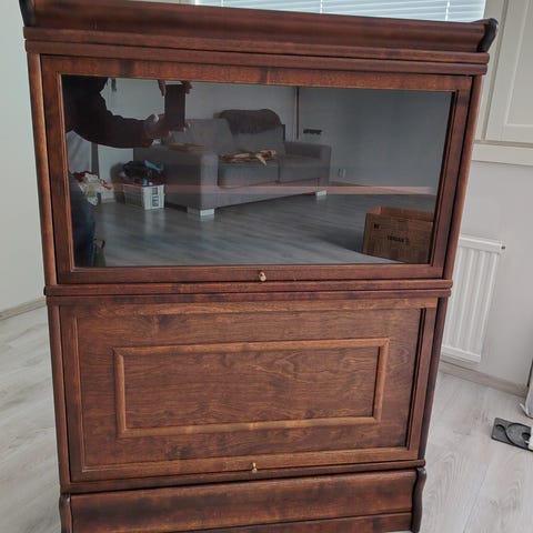 Olisi tämmöiset nosto-ovelliset lasivitriinit tyrkyllä, valmistetut Boknäsin tyyliin. Tai tiiä vaikka semmoiset olisivatkin, vetimet eivät vaan näytä oikeilta. Kasataan irtosokkelista, runko-osasta ja kattolevystä, istuvat napakasti paikoillaan ja kestävät ihan omalla painollaan. Nämä 2 kpl vierekkäin niin onhan siinä vaikka tv-taso jollekin? Pinnat siistit, lasit ehjät. Hinta 60e/ kpl.