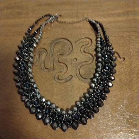 Kimaltava kaulakoru pituus 44cm+jatkoketju. Korun keskeltä pituus 5cm.