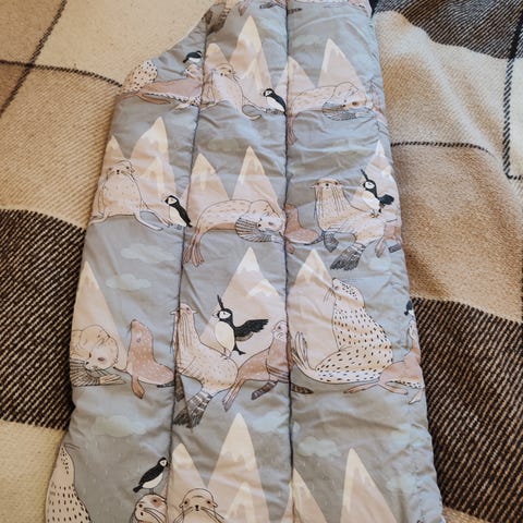 Myydään vuoden 2020 äitiyspakkauksen makuupussi, kahdella käytetty vaunukopassa.