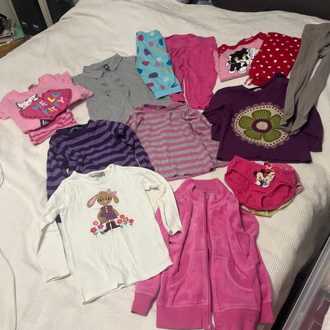 H&M t-paita, jääkarhupaita (Lupilu), käärmepaita (Disney), Palomies Sami -paita, dinosaurusfarkut (Jogger&Denim), jouluinen kauluspaita (H&M). Kaikki kokoa 98. Printit kuluneet pesussa, näkyy kuvassa kun zoomaa. Ei hajusteita, tupakointia tai lemmikkieläimiä. ToriDiili tai nouto Lempäälästä Kuljusta.