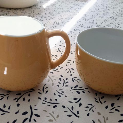 Arabian vanha Soma kermakko. Hyväkuntoinen, kultareunus säilynyt. Taustapuolen lasituksessa muutamia pienen pieniä kuoppia.