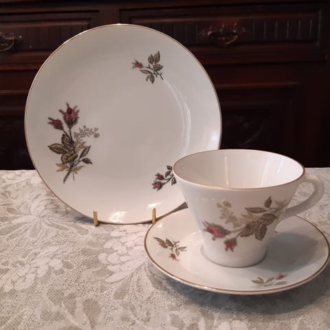 ruusu ruusukuvio kukkakuvio punakukka kukkakimppu kukanvarsi kahviastia posliini