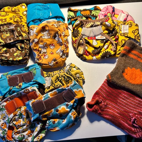 Myydään vähän käytettyjä, pestyjä kestovaippoja muovipussillinen. Koot 4 - 10 kg.