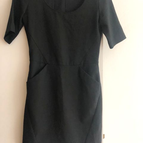 Filippa K musta mekko, koko S. 57 % asetaatti, 43% viskoosi. Mekossa on lyhyet hihat ja avonainen selkäosa, yksityiskohdat olkapäillä. Hyvässä kunnossa.