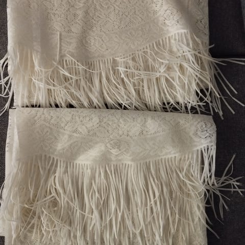 Läpikuultavat sivuverhot 2 kpl, jääneet tarpeettomiksi. Leveys n.140 cm ja korkeus n. 240 cm. Hinta sisältää postikulut ärrä paketilla.