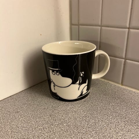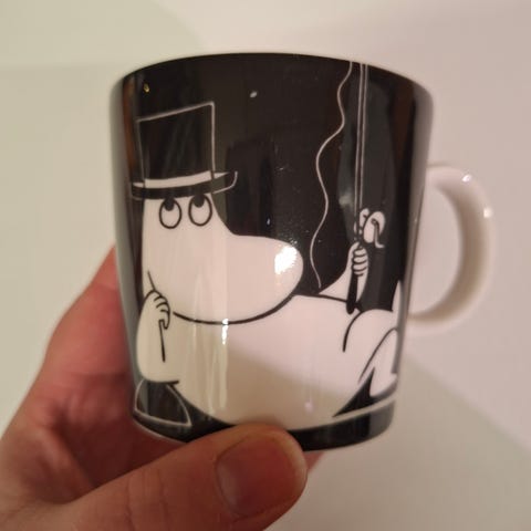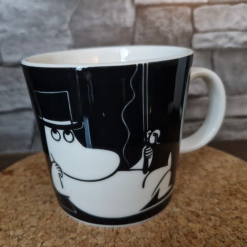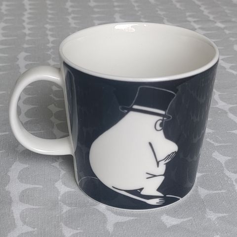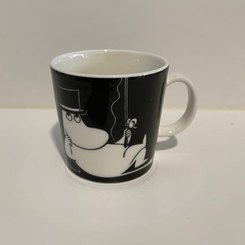 Myydään hyväkuntoinen Muumipappa tuumiskelee -muumimuki. Pinnassa pientä käytön jälkeä.
