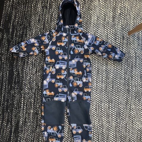 Name it softshell haalari koossa 92. Monsteriauto kuosilla. Parempana haalarina käytetty, pieni haitu polvissa.