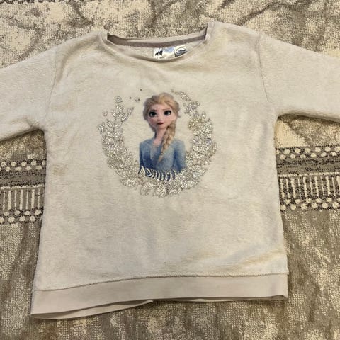 Frozen fleecetakki H&M 122/128. Hihassa haaleaa tahraa, muuten siisti. Hihoissa aukot peukaloille.