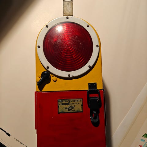 Ehjä hyväkuntoinen vesipullo,ehjä kynäteline,muste kyllä kuivunu ajan saatossa ja kellastumaa.Junan lähettäjän lakki.Valmistaja Vpu.Koko 57.Lakin merkistä irronnut yksi väkänen.Siisti kuntoinen yleis ilmeeltään.Vähän tarttunut hajua säilytyksestä.Yhteishinta kaikille.Vain nouto.