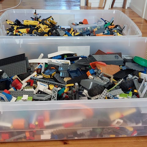 2 laatikollista pikku legoja valmiina kasseissa
