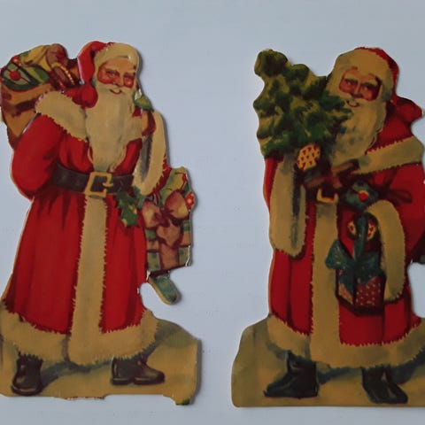 Myydään vanhoja joulupukki aiheisia kiiltokuvia.
