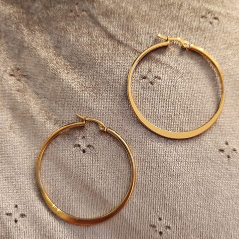 Uudet kullanväriset korvarenkaat. Ruostumatonta terästä. Myytävänä myös muualla. Postitus onnistuu myös kirjeenä 2,80e.