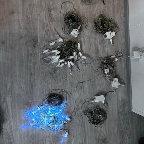 Kuvien mukaiset, toimivat, valo-osion pituus 1m,johdon pituus 4,5m , nouto Tuomarila tai Toridiili