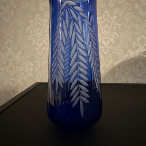 Sininen lasinen maljakko, jossa on kapea ja pitkä muotoilu. Maljakko soveltuu kukkien tai koristeiden esillepanoon. Materiaali lasi. Väri sininen.