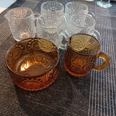 Ostan virheettömiä grapponia-sarjan ruskeita punssimukeja,kynttilänjalkoja,viinipikareita,maljakoita. Tarjoa!