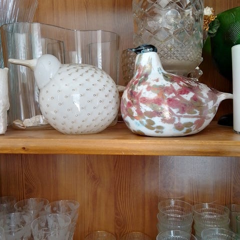 Joskus pyrstölleen lentänyt ja toiseen kylkeensä kolhun saanut kukko. Kolhu näkyy vain toiselta puolelta eli menee hyvin vitriinissä 👍. Kukkoa ei ole signeerattu.