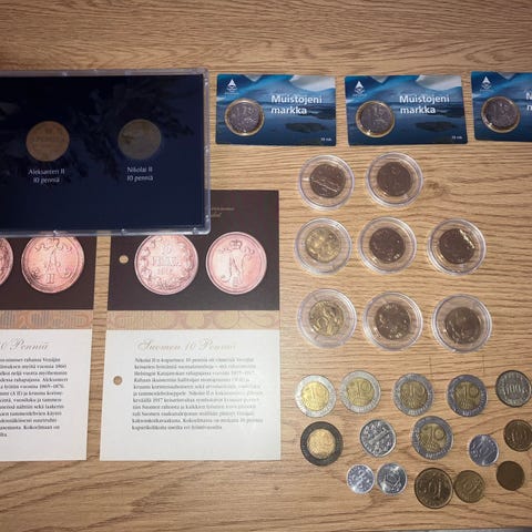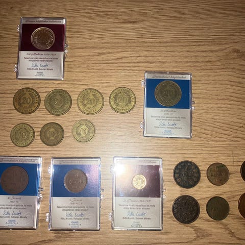 Vanhoja markka ajan rahoja.