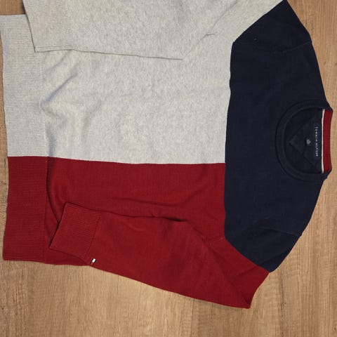 Myydään hyväkuntoinen Tommy Hilfiger neulehuppari, jossa raidoitus. Hupparissa edessä vetoketju ja kengurutasku sekä takana huppu.