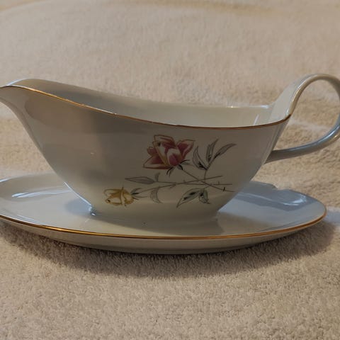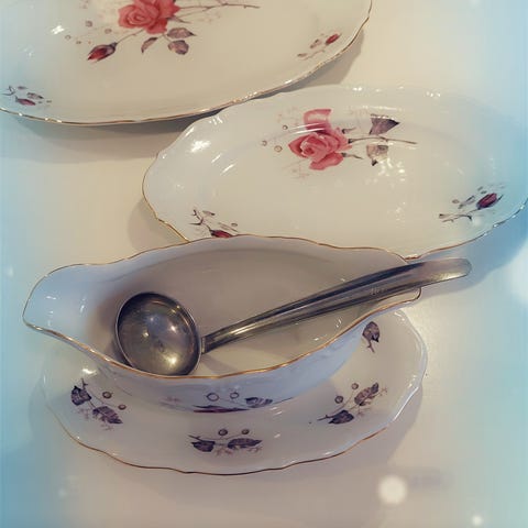 - kastikkeen tarjoilu-/valmistuskasari, kauha ja aluslatanen
