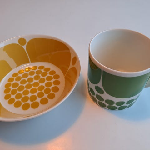 Arabia Sunnuntai astiat 2 mukia ja 2 lautasta 90 -+postikulut (ovh 120,-) Saa myös tarjota.