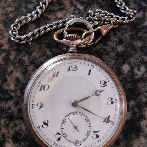 Nyt oiva joululahjavinkki!!! nyt ei rihkamaa pukinkontiin.Hieno ja toimiva antiikkinen miesten taskukello. Avaiveto.Koneisto kunnossa ja käy nätisti.Kaikki ehjää myös posliinitaulu.Avain tulee mukaan.Hienot viisarit. Koko noin 50mm.Katso kuvat ja muutkin myyntini Torissa. Kellon ikä ainakin yli 120 vuotta. Ikäisekseen hyvä.
