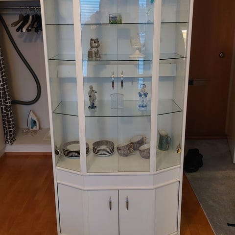 Siisti lasivitriini,kun pyyhkii pölyt ja irrottaa teipin jämät vitriinistä.