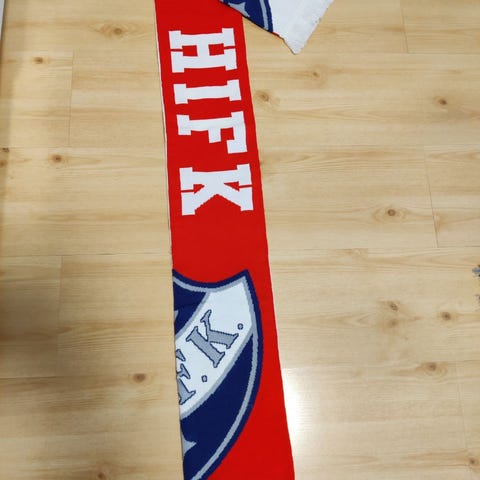 HIFK jääkiekkotuotteita: punainen pipo, jossa HIFK-teksti ja tupsu, punainen lippalakki jossa " Suomen Mestarit 2011"-teksti, punainen kylmälaukku jossa KOFF-logo ja HIFK-vaakuna, sekä punainen huivi jossa tekstit "HIFK STADI" ja Suomen Mestari 2011". Tuotteet ovat urheiluun ja fanituotteiksi soveltuvia asusteita.