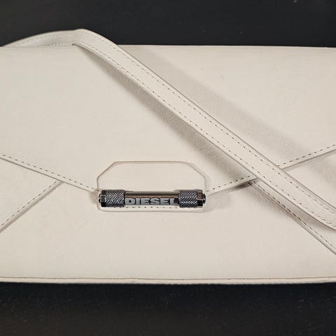 Dieselin olkalaukku säädettävällä hihnalla. Korkeus noin 27cm ja leveys 23cm