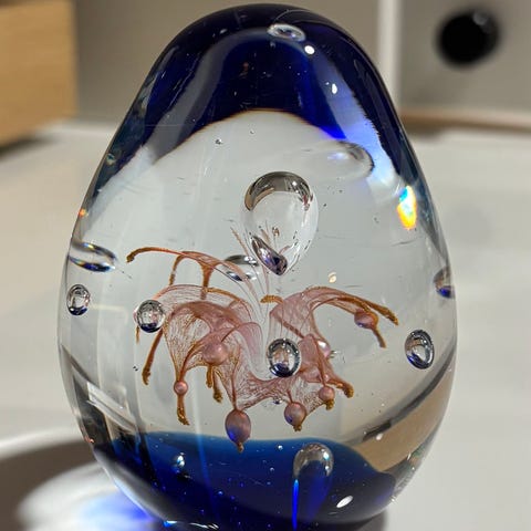 lasipaino, kirkas lasi, painoesine. Sopii paperipainoksi tai koriste-esineeksi.