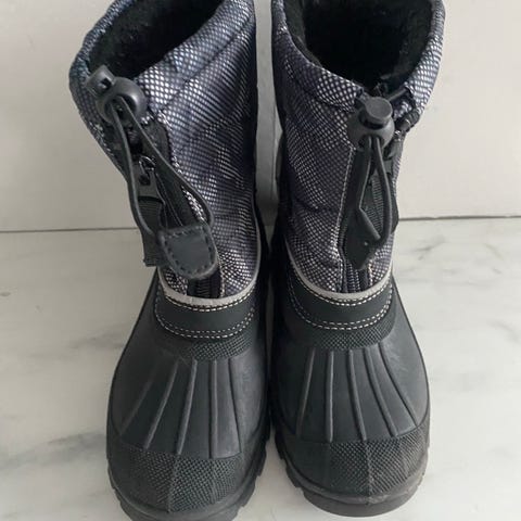 Lasten talvikengät, olleet todella vähällä käytöllä. Sisällä ohuehko pehmeä lämmittävä vuori eli ei siis mitkään tulipalopakkasten toppakenkien tyyppiset lämmittävyydeltään. Päällinen jäljitelmänupukkia, kosteussuoja suihkutettu. Sivuilla vetoketjutasku, edessä nauhat. Pohjissa kunnon urat.