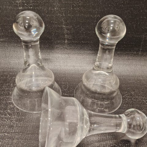 Kuvassa näkyvät esineet ovat meksikolaisia, suupuhallettuja viini- tai vesipikareita, joissa on koboltinsininen reuna ja jalka.