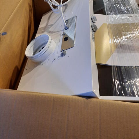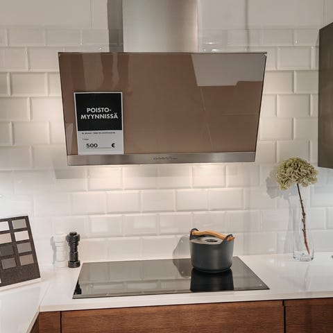 Myydään näyttelykappale Falmec Spring E.ion liesituuletin. Valkoinen lasi. Ovh. 3.110,00€