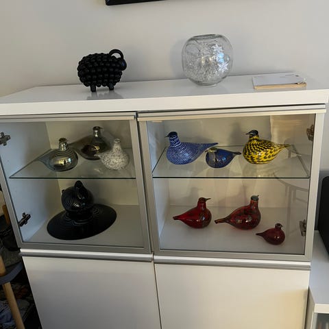 Calligariksen tyylikäs taso jossa lämpimän harmaa runko ja mustat sirot metallijalat. Ovet aukeaa painamalla, sisällä lasitasot. Leveys 162 cm syvyys 40 cm korkeus 75 cm