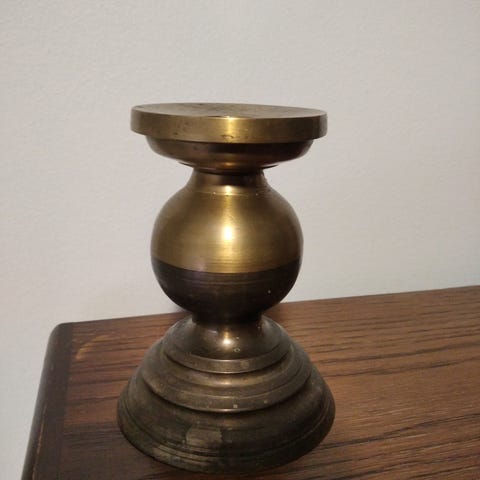 Jykevä ja painava Scandia present Sweden -messinki-kynttilänjalka, korkeus 21 cm.