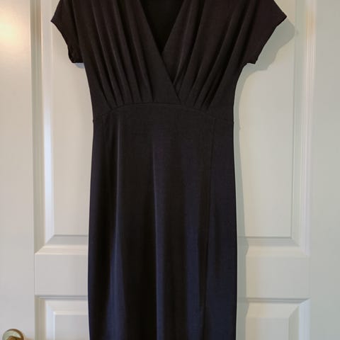 Tummansininen äitiysmekko imetysluukuilla.