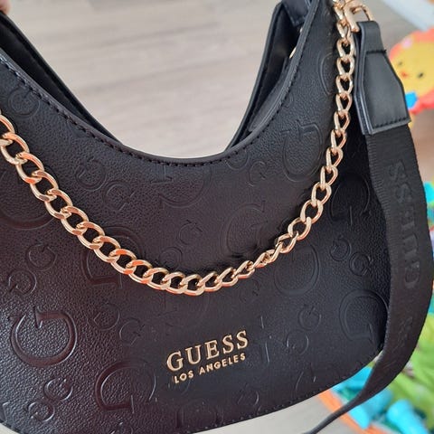 Guessin käsi-/olkalaukku mustaa keinonahkaa. Ollut tosi vähällä käytöllä, erittäin siisti, käsikahvat +käyttämätön olkahihna. Sisällä 1 vetoketjullinen tasku ja 3 pikkutaskua. Laukussa 2 osastoa, toisessa vetoketjusuljenta, toisessa neppari.