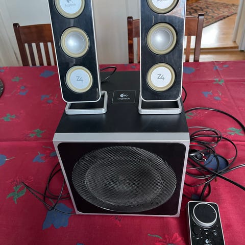 Myydään logitech merkkiset kaiuttimet. Subwooferia ei ole joka näihin kuuluu eli vain pelkät kaiuttimet.