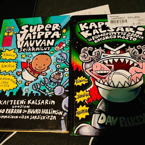 Myydään 2 kpl hyväkuntoisia Kapteeni Kalsari kirjoja. Tiedot kuvissa. Hinta yhteensä 6 euroa.Nouto Hyrylästä käteisellä tai Mobilepay.