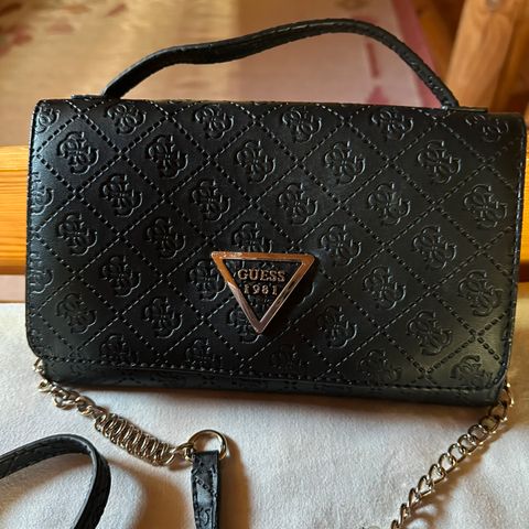 Guess naisten iltalaukku mustassa värissä, jossa on leopardiyksityiskohtainen suljin. Sisäpuolella on värikäs kuvioitu vuori ja vetoketjullinen osio. Lompakko on suunniteltu naisille ja sopii pienten esineiden säilytykseen.
