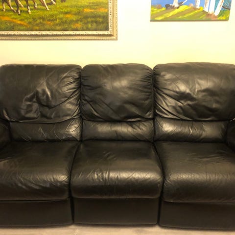 Musta nahkasohva muuton alla myyntiin. 230cm levee ja metrin syvä. Istuin osa 60cm sohvatyynystä. Iso rahi mukaan jonka voi asettaa miten haluaa:)