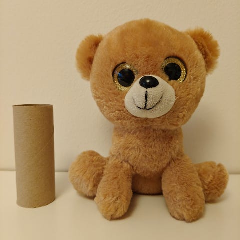 Mittakaavaa kuvassa antamassa 10 cm korkuinen vessapaperirullan hylsy.