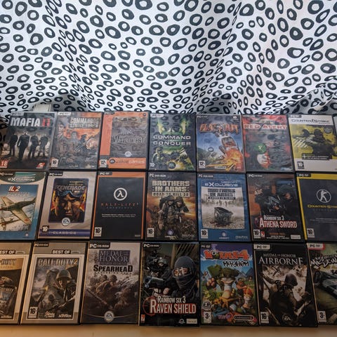 Kuvan hyväkuntoisia pc pelejä ohjevihkoineen tarjouksen perusteella, yksitellen posti 5,50e useampi 9e paketilla, tarjoa hintaa itselle vaan ylimääräisiä tilan täyttäjiä