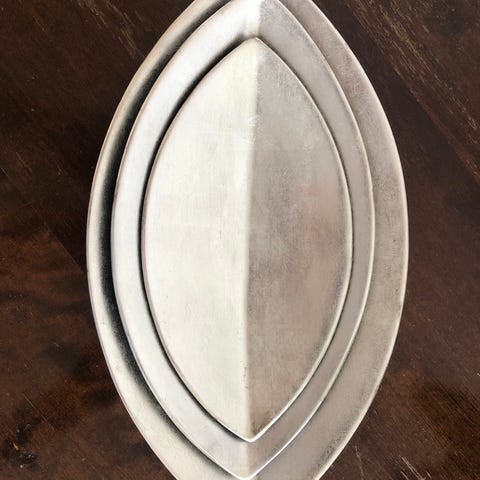 Kauniit tarjoilulautaset alpakkaa. Halkaisijat 15 ja 16 cm. Myynnissä myös isompia kokoja.