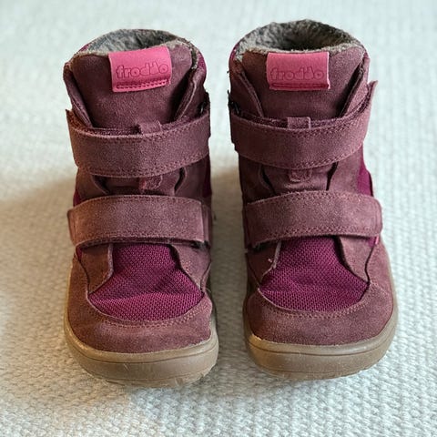Froddo lasten talvikengät, koko 30, unisex. Kengät ovat väriltään tumma pinkki ja valmistettu nahasta. Varustettu tarrakiinnityksellä ja lämpimällä vuorella, sopivat kylmiin olosuhteisiin. Kantapääkupissa vuori tallella.