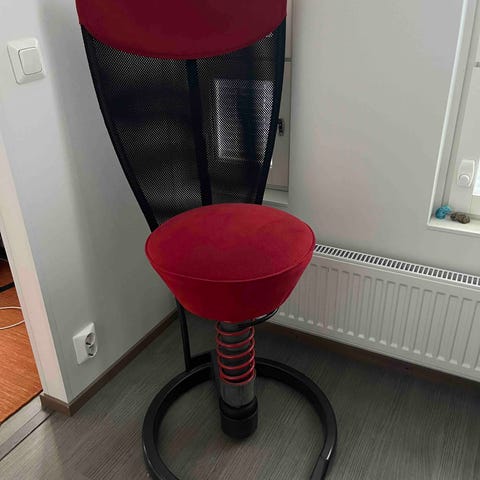 Korkeudensäätö 43–54 cm. Istuimen kangas on 100 % polyesteriä.