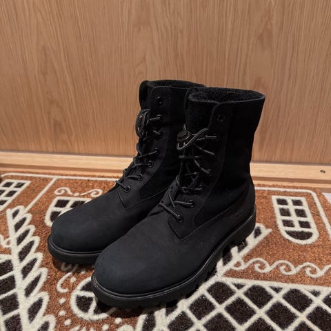 Muutaman kerran käytetyt mustat Timberland talvikengät luonnonvärisellä karvasomisteella, koko 39.