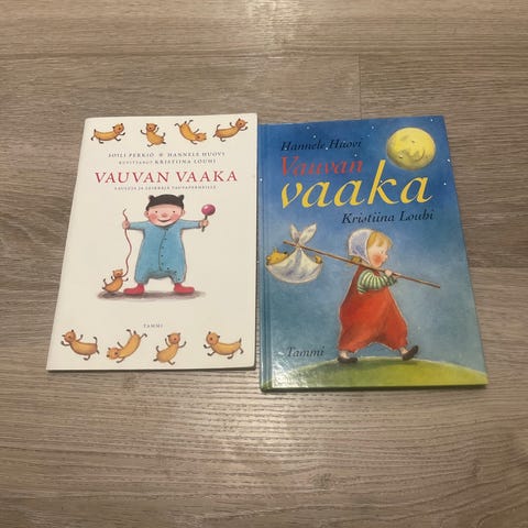 Ehjä ja siisti kovakantinen kirja. Hannele Huovin kirjoittama ja Kristiina Louhen kuvittama Vauvan vaaka loru- ja runokokoelma on ollut kestosuosikki jo vuosia. Kirjan painos vuodelta 1997.
