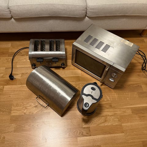 TERÄKSISET! mikroaaltouuni, leivänpaahdin, vedenkeitin ja leipälaatikko
